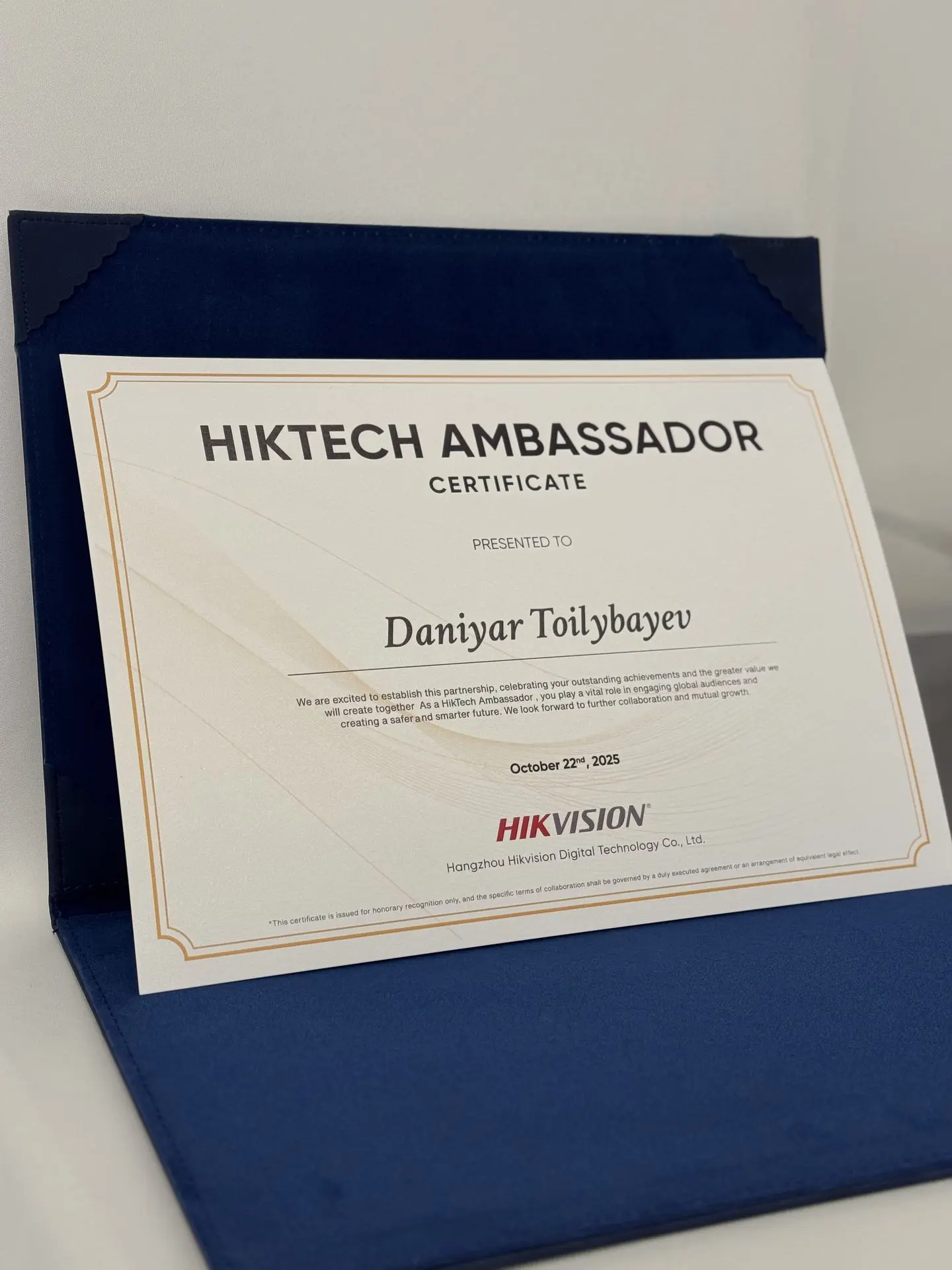 Мы особенно гордимся тем, что по итогам программы Данияр получил статус *Hikvision Ambassador 2026* — значительное достижение и большая честь, открывающая новые возможности для дальнейшего сотрудничества.